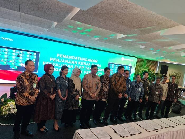 Propertidesain.com (Jakarta) – BP Tapera melakukan penandatangan Perjanjian Kerja Sama dengan 43 Bank Penyalur (5 bank Himbara, 4 bank swasta dan 33 Bank Pembangunan Daerah (BPD)) tentang penyaluran KPR Sejahtera FLPP bagi Masyarakat Berpenghasilan Rendah (MBR) tahun 2026 di Kantor BP Tapera, Menara Mandiri 2, Jakarta Selatan, Selasa (23/12). Penandatangan ini dilakukan secara seremoni diwakili dengan 10 bank penyalur dana FLPP tertinggi dan 1 perwakilan bank swasta tahun 2025. Bank tersebut adalah BTN, BTN Syariah (kini bernama BSN), BRI, BNI, Mandiri, BSI, BPD Jawa Barat dan Banten, BPD Jawa Barat dan Banten Syariah (BPD BJB Syariah), BPD Sumsel Babel, BPD Sumsel Babel Syariah, dan Bank Nobu.