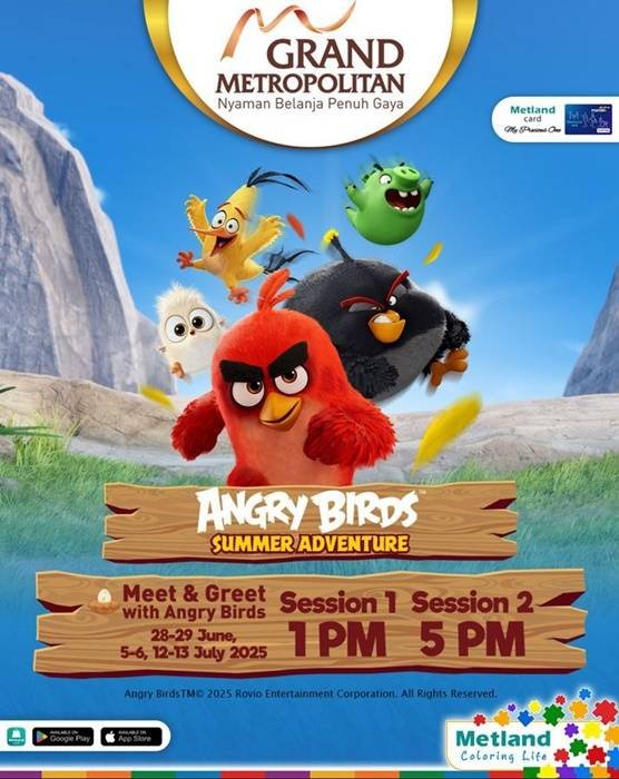Selain penampilan artis, sesuai dengan tema liburan sekolah di Grand Metropolitan, pengunjung dapat bertemu langsung dengan karakter ikonik Angry Bird seperti Red, Chuck, dan Bomb, serta mengabadikan momen seru melalui sesi foto bersama yang digelar tanggal 28, 29 Juni, & 5, 6, 12, 13 Juli 2025, masing-masing pukul 13.00 dan 17.00 WIB, untuk mengikuti program ini, pengunjung hanya perlu menjadi member Metland Card, yang dapat didaftarkan secara gratis dan mudah di area Layanan Pelanggan, Lantai Dasar Grand Metropolitan .